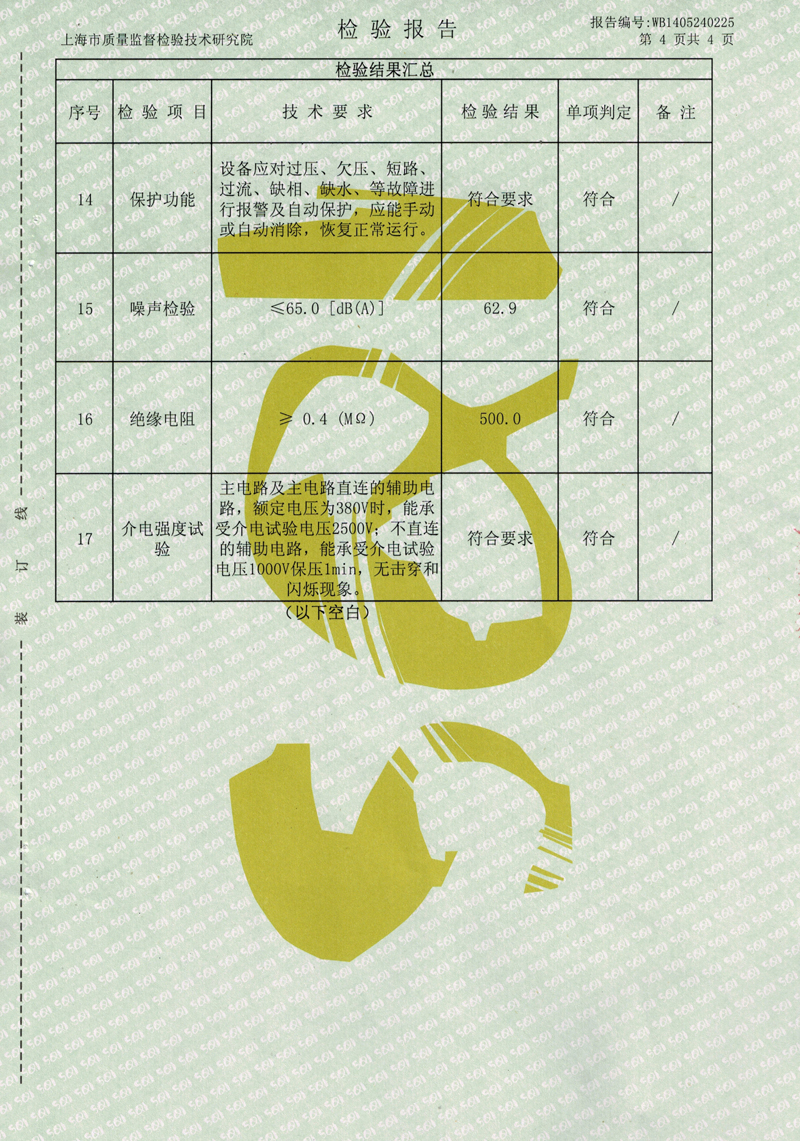 无负压给水设备检验报告